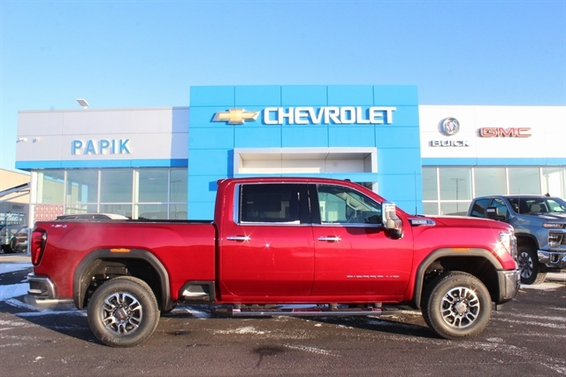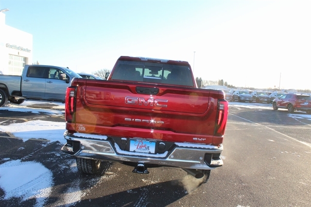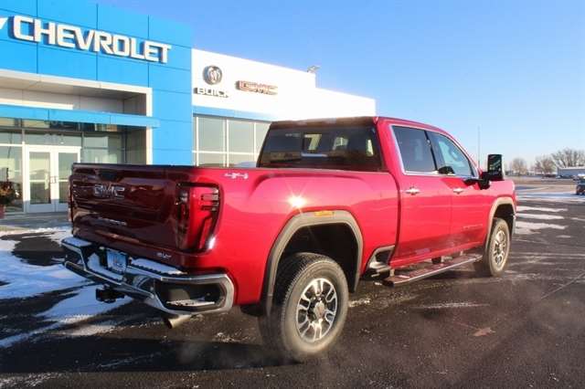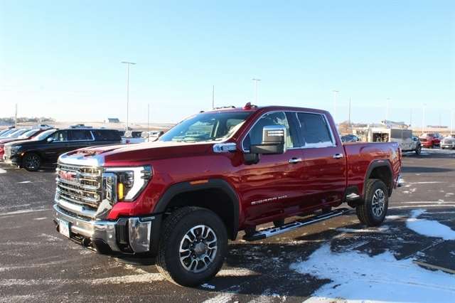 Volcanic Red Tintcoat 2025 GMC Sierra 3500HD SLT 4WD 10-Speed Automatic 6.6L V8 10-Speed Automatic, 4WD, Jet Black Leather.
