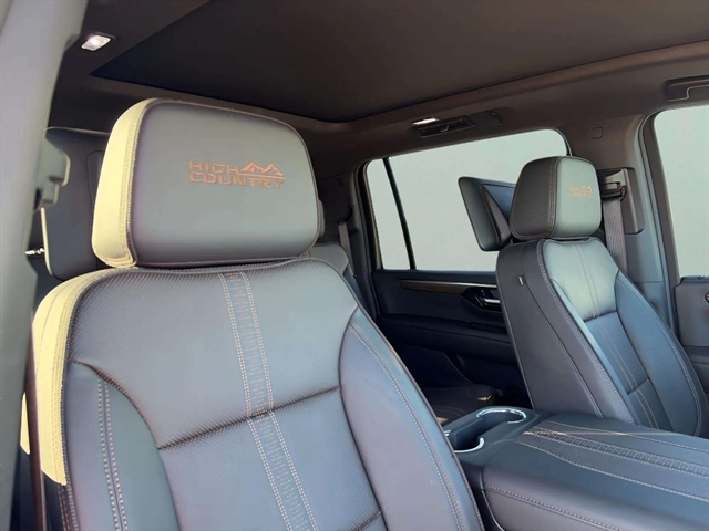 Advanced Trailering Package: Blind Zone Steering Assist with Trailering; Smart Trailer Integration Indicator; Hitch View with Pan/zoom Image Adjustment. Technology & Entertainment Package: Rear Seat Media System. Max Trailering Package: 2-Speed Active Electronic Autotrac Transfer Case; Hill Descent Control; Extra Capacity Cooling System; Integrated Trailer Brake Controller. Advanced Security Package: Self-Powered Horn Theft-Deterrent Alarm System; Vehicle Interior Movement Sensor; Vehicle Inclination Sensor; Glass Breakage Sensor. Technology Package: AutoSense Hands-Free Power Liftgate. High Country Deluxe: Dual-Pane Power Panoramic Sunroof; Air Ride Adaptive Suspension; Power-Retractable Assist Steps. Preferred Equipment Group 3LZ: 4-Way Power Front Passenger Lumbar Seat Adjuster; Bright Front and Rear Door Sill Plates; Memory Settings; 3rd Row 60/40 Power-Folding Split-Bench; Rear Power Liftgate; Chrome Door Handles with Body-Color Strip; LED Tail Lamps; 6.2L EcoTec3 V8 Engine; Inside Rearview Auo-Dimming Rear Camera Mirror; Front LED Fog Lamps; Heated Steering Wheel; Heated Driver and Front Passenger Seats; Universal Home Remote; Heated 2nd Row Outboard Seats; Power-Sliding Center Floor Console; Dual Exhaust System; Perforated Heated and Ventilated Seats; Power Tilt and Telescopic Steering Column; LED Headlamps with LED Daytime Running Lamps; 15" Diagonal Multi-Color Head-Up Display; Wireless Phone Charging; 8-Way Power Front Passenger Seat Adjuster; Bose 10-Speaker Surround with CenterPoint; 4-Way Power Driver Lumbar Seat Adjuster; Magnetic Ride Control Suspension; Power Release 2nd Row Bucket Seats; 275/50R22SL AS BW Tires; Heated Power-Adjustable Outside Mirrors. Enhanced Trailer View: Trailer Camera Provisions; Trailering Assist Guidelines. 22" X 9" Polished Aluminum Wheels. **Equipment listed is based on original vehicle build and subject to change. Please confirm the accuracy of the included equipment by calling the dealer prior to purchase.**