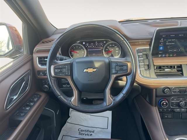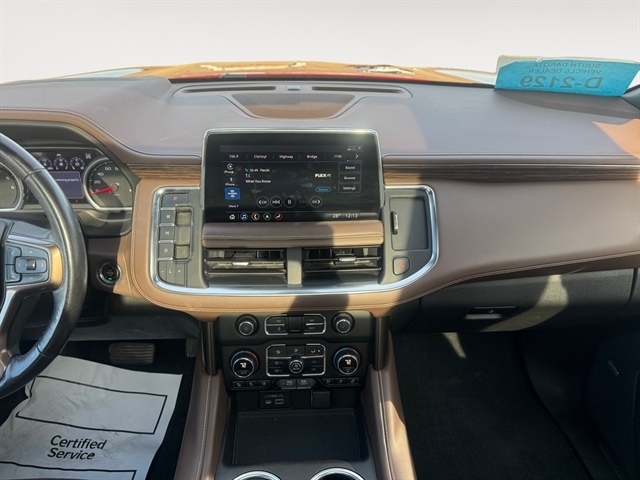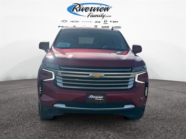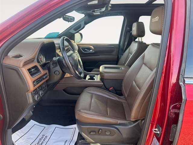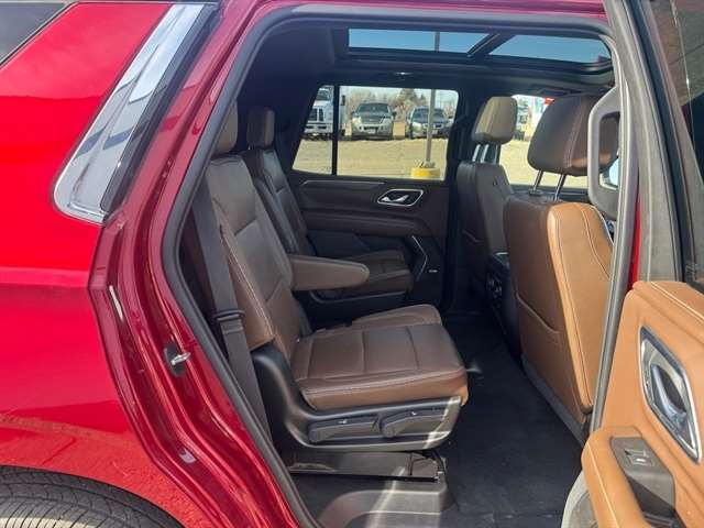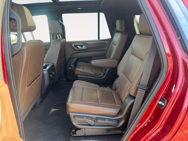 Max Trailering Package: Extra Capacity Cooling System. Advanced Trailering Package: Trailer Side Blind Zone Alert; Advanced Trailering System; Integrated Trailer Brake Controller; Hitch Guidance with Hitch View. High Country Deluxe: Dual-Pane Power Panoramic Sunroof; Floor Console; Air Ride Adaptive Suspension; Power-Retractable Assist Steps; Adaptive Cruise Control. Preferred Equipment Group 3LZ: Bright Front and Rear Door Sill Plates; Memory Settings; Perforated Leather Seat Trim; Remote Start; 3rd Row 60/40 Power-Folding Split-Bench Seat; Front and Rear Park Assist; Safety Alert Seat; Chrome Door Handles with Body-Color Strip; Hill Descent Control; Floor Console with Storage Area; 6.2L EcoTec3 V8 Engine; Rear Camera Mirror Washer; Inside Rearview Auo-Dimming Rear Camera Mirror; Automatic Heated Steering Wheel; LED Daytime Running Lamps; Rear Cross Traffic Alert; Wheels: 22" X 9" Sterling Silver Premium Painted; Driver and Front Outboard Passenger Airbags; Front High-Back Reclining Bucket Seats; Universal Home Remote; Color-Keyed Carpeting Floor Covering; Enhanced Driver Information Center; Heated 2nd Row Outboard Seats; Hands-Free Rear Power Programmable Liftgate; Lane Keep Assist with Lane Departure Warning; 2-Speed Active Electronic Autotrac Transfer Case; 1st and 2nd Row Color-Keyed Carpeted Floor Mats; Lane Change Alert with Side Blind Zone Alert; Dual Exhaust System; HD Radio; SiriusXM Radio with 360L; Chevrolet Infotainment 3 Premium System Radio; HD Surround Vision; Power Tilt and Telescopic Steering Column; Leather-Wrapped Steering Wheel; 15" Diagonal Multi-Color Head-Up Display; Rear Pedestrian Alert; Magnetic Ride Control Suspension; SiriusXM NavTraffic; Infotainment Display; Power Release 2nd Row Bucket Seats; 2 USB Data Ports; 275/50R22SL AS BW Tires; Outside Heated Power-Adjustable Mirrors. Power-Retractable Assist Steps. Dual-Pane Power Panoramic Sunroof. Air Ride Adaptive Suspension. Adaptive Cruise Control. Cherry Red Tintcoat. Floor Console. **Equipment listed is based on original vehicle build and subject to change. Please confirm the accuracy of the included equipment by calling the dealer prior to purchase.**