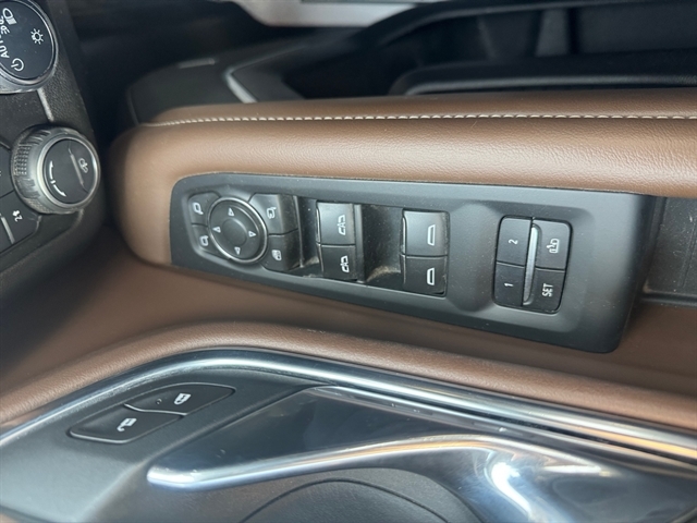 | High Country Deluxe: Dual-Pane Power Panoramic Sunroof; Floor Console; Air Ride Adaptive Suspension; Power-Retractable Assist Steps; Adaptive Cruise Control | Preferred Equipment Group 3LZ: Bright Front and Rear Door Sill Plates; Memory Settings; Perforated Leather Seat Trim; Remote Start; 3rd Row 60/40 Power-Folding Split-Bench Seat; Front and Rear Park Assist; Safety Alert Seat; Chrome Door Handles with Body-Color Strip; Hill Descent Control; Floor Console with Storage Area; 6.2L EcoTec3 V8 Engine; Rear Camera Mirror Washer; Inside Rearview Auo-Dimming Rear Camera Mirror; Automatic Heated Steering Wheel; LED Daytime Running Lamps; Rear Cross Traffic Alert; Wheels: 22" X 9" Sterling Silver Premium Painted; Driver and Front Outboard Passenger Airbags; Front High-Back Reclining Bucket Seats; Universal Home Remote; Color-Keyed Carpeting Floor Covering; Enhanced Driver Information Center; Heated 2nd Row Outboard Seats; Hands-Free Rear Power Programmable Liftgate; Lane Keep Assist with Lane Departure Warning; 2-Speed Active Electronic Autotrac Transfer Case; 1st and 2nd Row Color-Keyed Carpeted Floor Mats; Lane Change Alert with Side Blind Zone Alert; Dual Exhaust System; HD Radio; SiriusXM Radio with 360L; Chevrolet Infotainment 3 Premium System Radio; HD Surround Vision; Power Tilt and Telescopic Steering Column; Leather-Wrapped Steering Wheel; 15" Diagonal Multi-Color Head-Up Display; Rear Pedestrian Alert; Magnetic Ride Control Suspension; SiriusXM NavTraffic; Infotainment Display; Power Release 2nd Row Bucket Seats; 2 USB Data Ports; 275/50R22SL AS BW Tires; Outside Heated Power-Adjustable Mirrors |