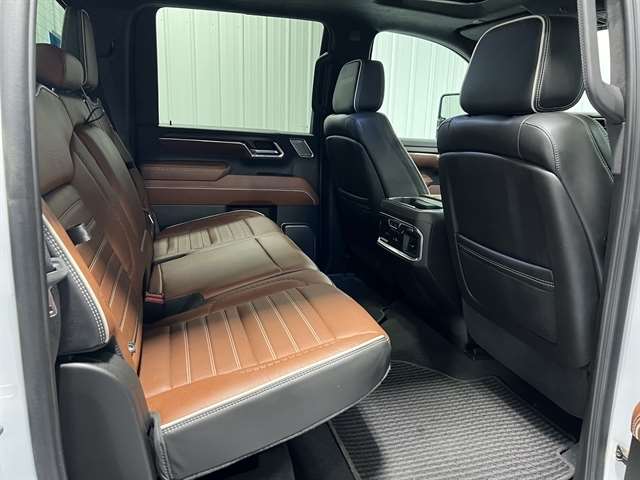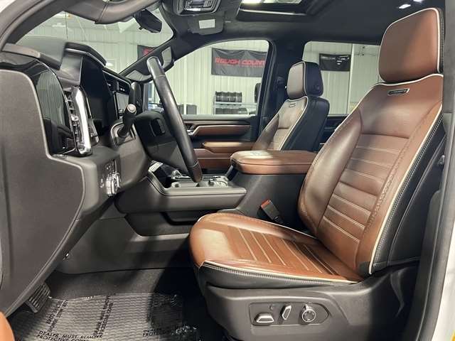 Fully detailed, 10-Speed Automatic, 4WD, Alpine Umber Leather, 12 Speakers, 120-Volt Bed Mounted Power Outlet, 120-Volt Instrument Panel Power Outlet, 16-Way Power Driver Seat Adjuster w/Lumbar, 16-Way Power Passenger Seat Adjuster w/Lumbar, 2 Charge-Only Rear USB Ports, 2 Charge/Data USB Ports Inside Center Console, 2 USB Ports, 2-Speed Active Transfer Case, 220 Amp Alternator, 3.42 Rear Axle Ratio, 4-Wheel Disc Brakes, ABS brakes, Air Conditioning, Alloy wheels, AM/FM radio: SiriusXM with 360L, Apple CarPlay/Android Auto, Auto High-beam Headlights, Auto-dimming door mirrors, Auto-Dimming Inside Rearview Mirror w/Camera, Auto-dimming Rear-View mirror, Automatic Emergency Braking, Automatic temperature control, Bed View Camera w/2 Trailer Camera Provisions, Block heater, Body Color Wheel Arch Moldings (LPO), Bose Premium Series 12-Speaker System, Brake assist, Buckle to Drive, Bumpers: body-color, Compass, Deep-Tinted Glass, Delay-off headlights, Driver door bin, Driver Memory, Driver vanity mirror, Dual front impact airbags, Dual front side impact airbags, Dual Heavy-Duty 70 Amp-Hr Battery, Electric Rear-Window Defogger, Electronic Stability Control, Emergency communication system: OnStar and GMC connected services capable, Floor-Mounted Center Console, Following Distance Indicator, Forward Collision Alert, Front anti-roll bar, Front Bucket Seats, Front Center Armrest, Front dual zone A/C, Front fog lights, Front License Plate Kit, Front Pedestrian Braking, Front Rain-Sensing Wipers, Front reading lights, Front wheel independent suspension, Full Grain Leather Seat Trim, Fully automatic headlights, Garage door transmitter, Genuine wood dashboard insert, Genuine wood door panel insert, GMC Premium 13.4`` Diagonal Information Display, Gooseneck/5th Wheel Prep Package, HD Surround Vision, Heads-Up Display, Heated 2nd Row Outboard Seats, Heated door mirrors, Heated Driver & Front Outboard Passenger Seats, Heated front seats, Heated rear seats, Heated steering wheel, High Idle Switch, Hill Descent Control, Hitch Guidance w/Hitch View, Illuminated entry, In-Vehicle Trailering App, Integrated Trailer Brake Controller, IntelliBeam Automatic High Beam On/Off, Keyless Open & Start, Lane Departure Warning System, Leather steering wheel, LED Cargo Area Lighting, LED Smoked Amber Roof Marker Lamps, Low tire pressure warning, Manual Tilt-Wheel/Telescoping Steering Column, Memory seat, Multicolor 15`` Diagonal Head-Up Display, Occupant sensing airbag, Off-Road Suspension, Outside temperature display, Overhead airbag, Overhead console, Panic alarm, Passenger door bin, Passenger vanity mirror, Pickup Bed, Power door mirrors, Power driver seat, Power Front Windows w/Passenger Express Up/Down, Power moonroof, Power passenger seat, Power Sliding Rear Window w/Defogger, Power steering, Power Sunroof, Power windows, Preferred Equipment Group 5SB, Premium audio system: Premium GMC Infotainment System, ProGrade Trailering System, Push Button Start, Radio: AM/FM w/Premium GMC Infotainment System, Rain sensing wipers, Rear Cross Traffic Alert, Rear reading lights, Rear seat center armrest, Rear step bumper, Rear Wheelhouse Liners, Rear window defroster, Remote keyless entry, Remote Vehicle Starter System, Safety Alert Seat, Security system, Signature Denali Grille in Vader Chrome, SiriusXM w/360L, Speed control, Speed-sensing steering, Split folding rear seat, Spray-On Pickup Bedliner w/Denali Logo, Steering Wheel Audio Controls, Steering wheel mounted audio controls, Tachometer, Technology Package, Telescoping steering wheel, Tilt steering wheel, Traction control, Trailer Camera Provisions, Trailer Side Blind Zone Alert, Trailer Tire Pressure Monitor Sensors, Trip computer, Ultrasonic Front & Rear Park Assist, Unauthorized Entry Theft-Deterrent System, Universal Home Remote, Variably intermittent wipers, Ventilated Driver & Front Passenger Seats, Ventilated front seats, Voltmeter, Wheels: 20`` Ultra-Bright Machined Aluminum, Wireless Charging, Wireles