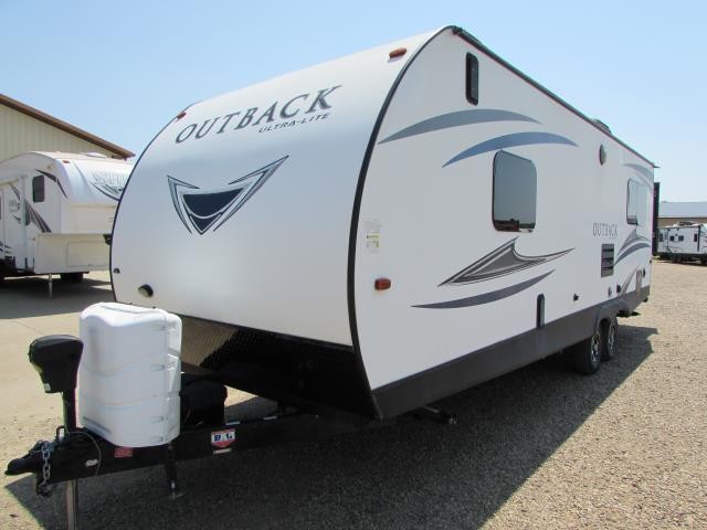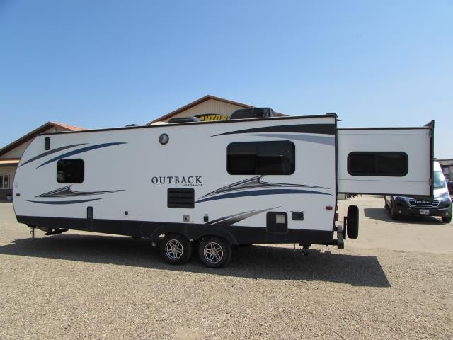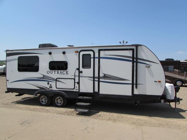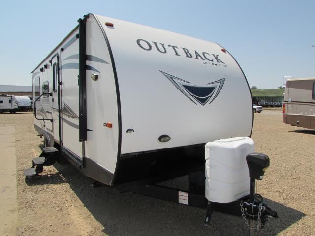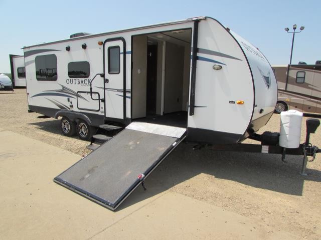 (SOLD) 2018 KEYSTONE OUTBACK 240 URS , FRONT GARAGE TOY HAULER, REAR KING BED SLIDE!