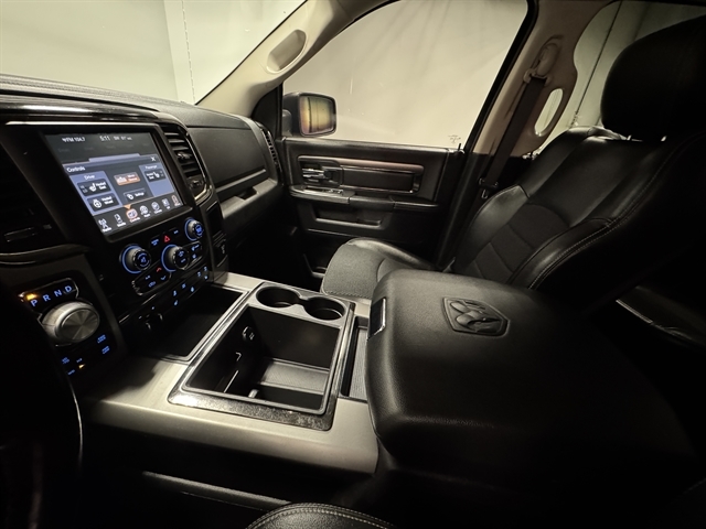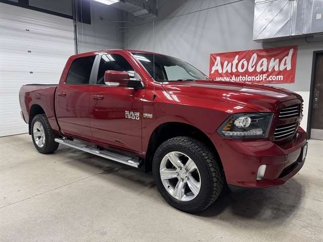 **LOCAL TRADE IN**, **LEATHER**, BLUETOOTH, ALL BOOKS AND KEYS, **REMOTE START**, **Back-Up Camera**, 1500 Sport, 4D Crew Cab, HEMI 5.7L V8 Multi Displacement VVT, 4WD, Deep Cherry Red Crystal Pearlcoat, Black w/Cloth Bucket Seats, 20" x 9" Polished/Painted Aluminum Wheels, 4-Wheel Disc Brakes, 9 Amplified Speakers w/Subwoofer, ABS brakes, Adjustable pedals, Air Conditioning, Anti-Spin Differential Rear Axle, Automatic temperature control, Brake assist, Compass, Convenience Group, Electronic Stability Control, Engine Block Heater, Front dual zone A/C, Front fog lights, Fully automatic headlights, Garage door transmitter, Heated door mirrors, Heated Front Seats, Heated steering wheel, Keyless Enter-N-Go, Overhead console, Panic alarm, ParkView Rear Back-Up Camera, Power door mirrors, Power driver seat, Quick Order Package 26L Sport, Radio: Uconnect 8.4A AM/FM/SXM/BT, Rain Sensitive Windshield Wipers, Remote Proximity Keyless Entry, Remote Start & Security Group, Remote Start System, Security Alarm, Speed control, Split folding rear seat, Sport Premium Group, Steering wheel mounted audio controls, Traction control, Trailer Brake Control.
