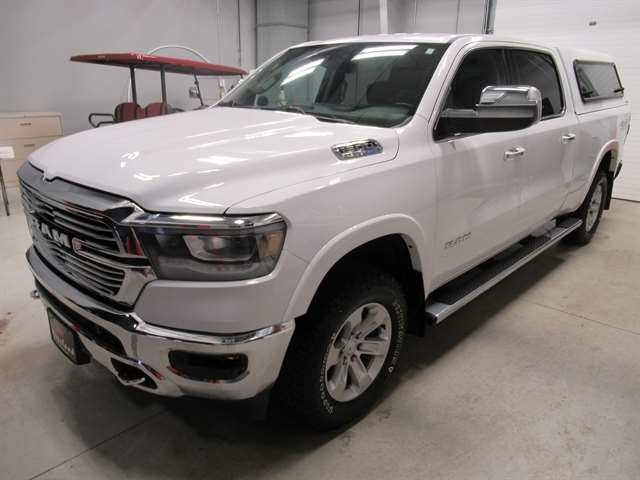 **ONE OWNER**, ***CLEAN CARFAX***, **NAVIGATION**, **LEATHER**, BLUETOOTH, ALL BOOKS AND KEYS, **BED LINER**, **REMOTE START**, **Back-Up Camera**, **HEATED/COOLED SEATS**, **HEATED SEATS & STEERING WHEEL**, 1500 Laramie, V8, 8-Speed Automatic, 4WD, Bright White Clearcoat, Black Leather, 10 SPEAKER AUDIO, 4G LTE Wi-Fi Hot Spot, 4-Wheel Disc Brakes, 8.4`` Touchscreen Display, ABS brakes, Adjustable pedals, AM/FM radio: SiriusXM, Apple CarPlay/Android Auto, Auto Dimming Exterior Passenger Mirror, Auto High Beam Headlamp Control, Automatic temperature control, Bed Utility Group, Blind Spot & Cross Path Detection, Bright Day Light Opening Moldings, Chrome Appearance Group, Chrome Tow Hooks, Disassociated Touchscreen Display, Electronic Stability Control, E-Locker Rear Axle, Exterior Mirrors w/Memory, Foam Bottle Insert (Door Trim Panel), For More Info, Call 800-643-2112, Front dual zone A/C, Front Extra HD Shock Absorbers, Front fog lights, Garage door transmitter, GPS Antenna Input, GPS Navigation, HD Radio, Heated door mirrors, Heated Front Seats, Heated Steering Wheel, Hill Descent Control, Integrated Center Stack Radio, Integrated Voice Command w/Bluetooth, Laramie Level 1 Equipment Group (DISC), Memory seat, MOPAR 4 Adjustable Cargo Tie-Down Hooks, MOPAR Deployable Bed Step, MOPAR Spray In Bedliner, Navigation System, Off Road Decals, Off Road Group, Off-Road Information Pages, ParkSense Front/Rear Park Assist w/Stop, Pedal memory, Pick-Up Box Lighting, Power 4-Way Driver Lumbar Adjust, Power 4-Way Passenger Lumbar Adjust, Power 8-Way Driver & Passenger Seats, Power driver seat, Quick Order Package 27H Laramie, Radio: Uconnect 4C Nav w/8.4`` Display, Rain Sensitive Windshield Wipers, Rear 60/40 Folding Split Recline Seat, Rear Extra HD Shock Absorbers, Remote keyless entry, Remote Tailgate Release, SiriusXM Traffic Plus, SiriusXM Travel Link, Steering wheel mounted audio controls, Tailgate Ajar Warning Lamp, Telescoping steering wheel, Tow Hooks, Traction control, Trailer Brake Control, Trailer Light Check, Trailer Reverse Steering Control, Trailer Tire Pressure Monitoring System, Trailer Tow Group (DISC), USB Host Flip, Ventilated Front Seats, Wheel to Wheel Side Steps.