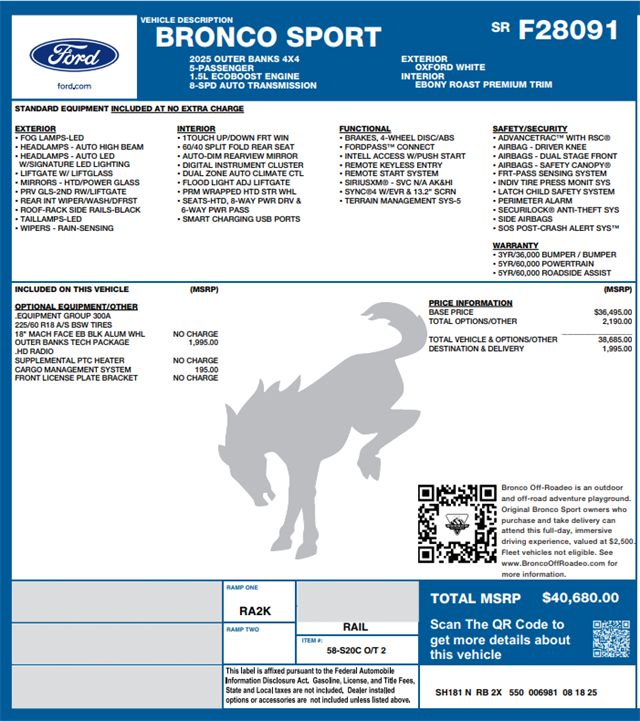 INSTALLED OPTIONS ON THIS BRONCO SPORT