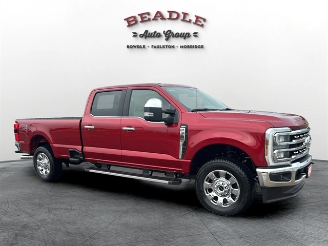 Experience unmatched strength and sophistication with the 2026 Ford F-350 Super Duty Lariat, now available at Beadle Ford in Bowdle, South Dakota. This Crew Cab 4x4 in striking Ruby Red Metallic is powered by the proven 7.3L V8 engine and paired with a 10-speed TorqShift automatic transmission, delivering the power and performance you need for work or play. Whether you’re hauling heavy loads or cruising the open highways between Aberdeen, SD, Bismarck, ND, and Pierre, SD, this Super Duty offers durability and comfort in one impressive package.
