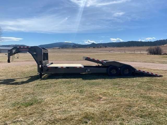 2026 Midsota Model TBWB26 Gooseneck Tilt Bed Trailer, 102" Wide and 26ft long, 8ft stationary deck with a 18ft tilt bed and traction strips, Pallet Fork Holders, Crossmembers are 16" O.C., Tandem 8K axles with 17.5 Steel Wheels and 16 ply tires, GVWR 18,400lbs,