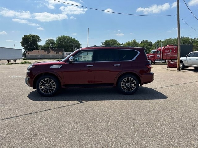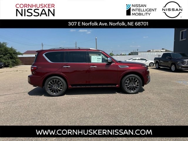 Scores 18 Highway MPG and 13 City MPG! This New Nissan Armada has a durable 5.6 L Endurance V8 Engine paired with a 7 Speed Automatic Transmission.*You Can't Beat the Price with These Options*COLOR: Coulis Red Metallic, ENGINE: 5.6 L Endurance V8 Engine, 7 Speed Automatic Transmission, 22" Wheels, 4WD Selector Switch, Class IV Integrated Receiver Hitch, Nissan Safety Shield 360, Automatic Emergency Braking with Pedestrian Detection, Lane Departure Warning, Blind Spot Warning, Rear Automatic Braking, Rear Cross Traffic Alert, Intelligent Forward Collision Warning, Intelligent Lane Intervention, Intelligent Blind Spot Intervention, Intelligent Around View Monitor, Intelligent Backup Intervention, Climate Controlled Front Seats, Heated Second Row Seats, Heated Steering Wheel, Wireless Charging, Driver Attention Alert, Intelligent Cruise Control, Traffic Sign Recognition, Hill Start Assist, Trailer Brake Controller, Trailer Sway Control, Remote Engine Start, 12.3" Screen, Nissan Door to Door Navigation, Power Sliding Moonroof, Power Liftgate, Chrome Power Folding Heated Outside Mirrors with LED Turn Signal Indicators.*Stop By Today*For a must-own New Nissan come see us at Cornhusker Nissan, 307 E Norfolk Ave, Norfolk, NE 68701 your local New Car Dealership in Ne.
