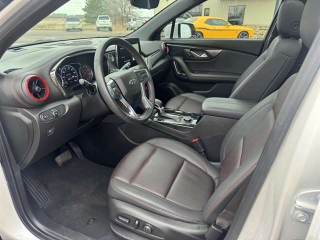 Iridescent Pearl Tricoat 2023 Chevrolet Blazer RS AWD 9-Speed Automatic with Overdrive 3.6L V6 SIDI *Leather Seats, Navigation System, Sunroof/Moonroof, Bluetooth, Backup Camera, Collision Warning System, 360 degree Camera, Adaptive Cruise Control, Heated Seats, Blind-Spot Monitors, Lane Keeping Assist, Touchscreen Controls, Keyless Access with Push Button Start, Automatic Headlights, Apple CarPlay, Android Auto, Keyless Entry, Multi-zone Climate Control, Steering Wheel Controls, Premium Wheels, Trailer Hitch, Remote Start, AWD, Adaptive Cruise Control, Apple CarPlay/Android Auto, Auto-dimming Rear-View mirror, Automatic temperature control, Bose Premium 8-Speaker Audio System Feature, Driver Confidence II Package, Electronic Stability Control, Enhanced Automatic Emergency Braking, HD Surround Vision, Heated steering wheel, Navigation System, Outside temperature display, Perforated Leather-Appointed Seat Trim, Power driver seat, Power Liftgate, Power Panoramic Tilt-Sliding Sunroof, Power passenger seat, Premium audio system: Chevrolet Infotainment 3 Premium, Rear Camera Mirror, Rear Camera Mirror Washer, Rear window defroster, Safety Alert Seat, Telescoping steering wheel, Wheels: 20`` Gloss Black Aluminum.