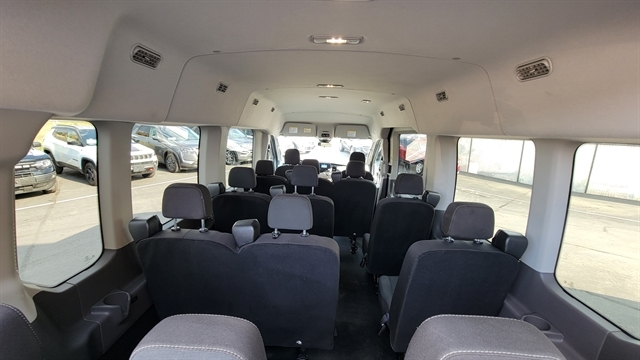 INSIDE, YOU’LL FIND AIR CONDITIONING, DURABLE CLOTH INTERIOR, 15-PASSENGER SEATING, TILT/TELESCOPIC STEERING WHEEL, CENTER CONSOLE WITH LOCKING COMPARTMENT, 12V POWERPOINT IN THE FRONT, TACHOMETER, AND ASSIST HANDLES AT BOTH THE A- AND B-PILLARS FOR EASY ENTRY AND EXIT.