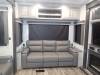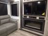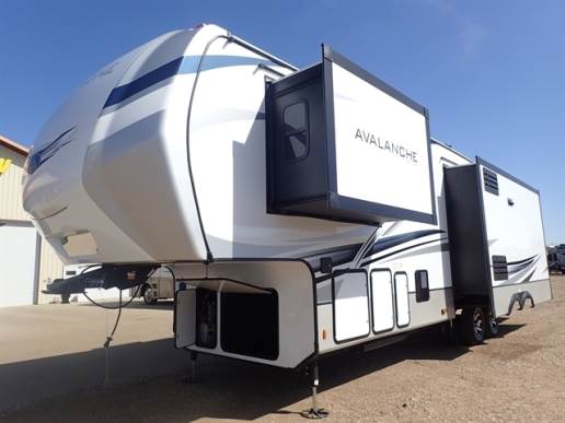 You and your family of four will love the spacious rear living area and mid-kitchen with dual opposing slides, a hide-a-bed sofa sleeper, theater seating for movie night, and a free standing dinette for meal time and game night. The kitchen island offers extra counter space to prepare and serve snacks as well as wash the dishes, and the hutch gives you more storage and a place to set your keys and cellphone. You might like to upgrade your 18 cu. ft. refrigerator to a residential refrigerator, just choose that option! Relax outside under one of the two awnings, and the LCl SolidStep entry gives you a secure way to enter and exit the fifth wheel. The master bedroom is spacious as well with the third slide out, and the master closet, chest, bench and storage under the king bed will allow you to travel with everything you need.