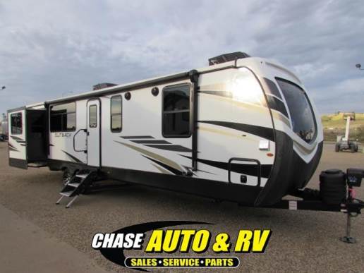 This travel trailer has a lot of great features: 2 air conditioners, 200 watt solar system, washer/dryer prep, king bed, auto leveling/stabilizing system! Fireplace, bluetooth stereo with DVD player, smart TV, outside speakers, and more!!! Come to Chase Auto and RV in Fort Pierre, South Dakota today to make this your camper!